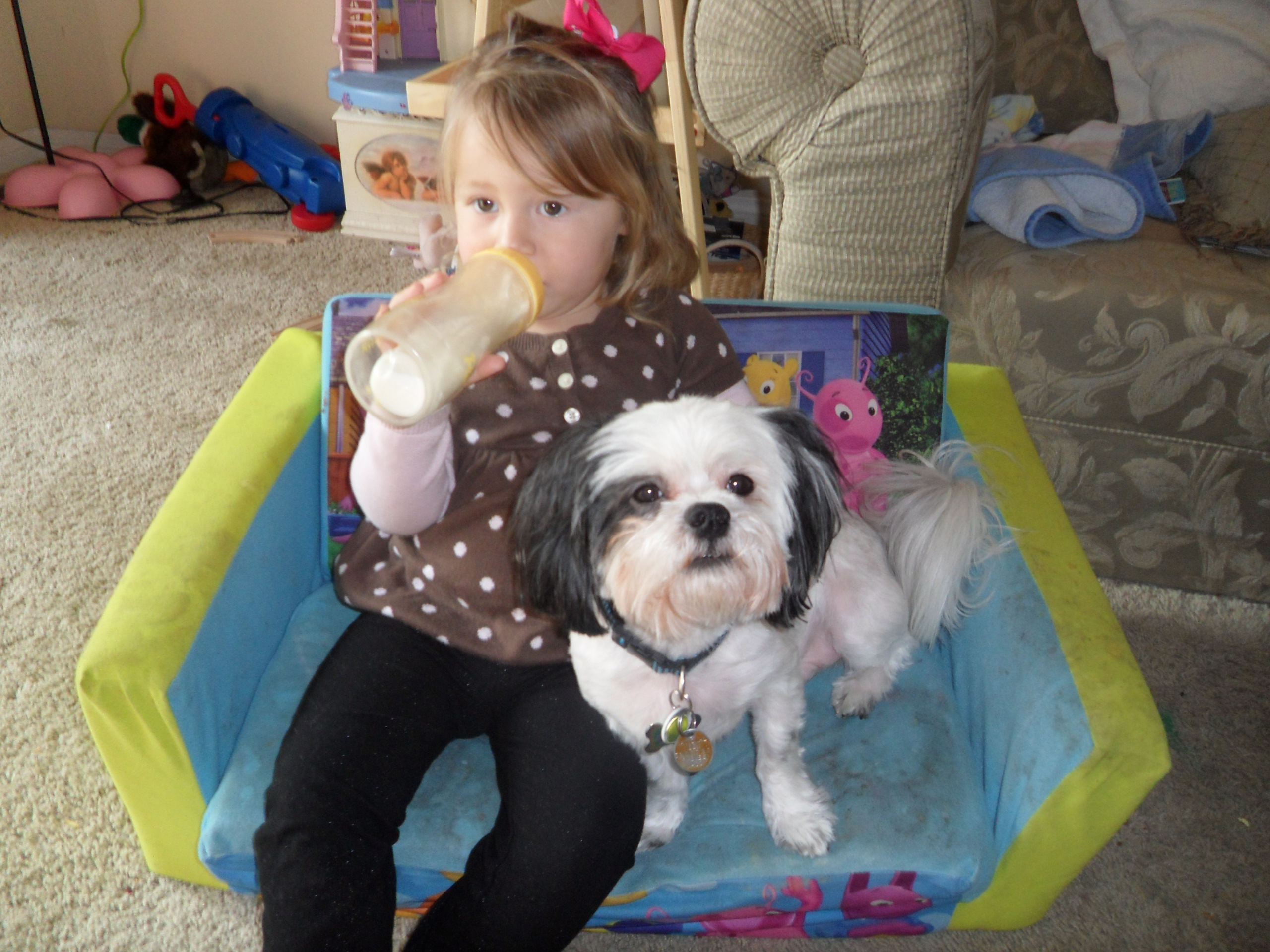 Såhär satt Abbie och Tuffisen idag när ja stog i köket o grejja lunch.. haha så söta.