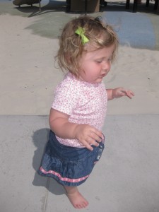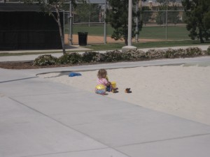 Hon tyckte de va jättekul att gå och sitta i sanden.. för en ggns skull