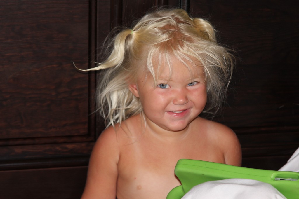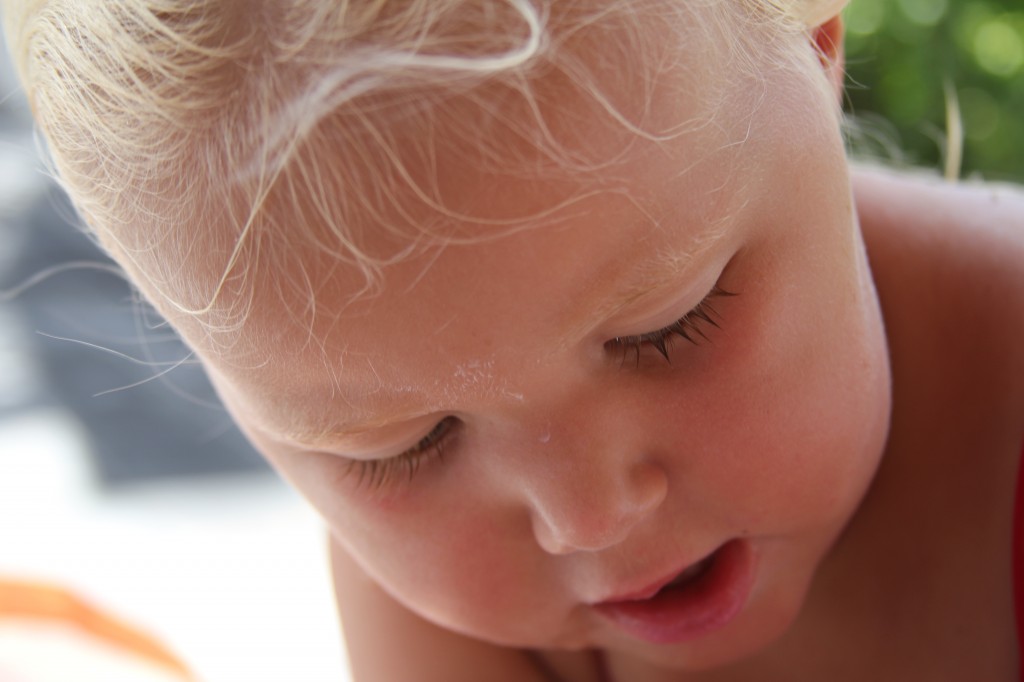 Abigail brände sig under ögonen och på näsan första dagen, stackarn 🙁 Även fast vi