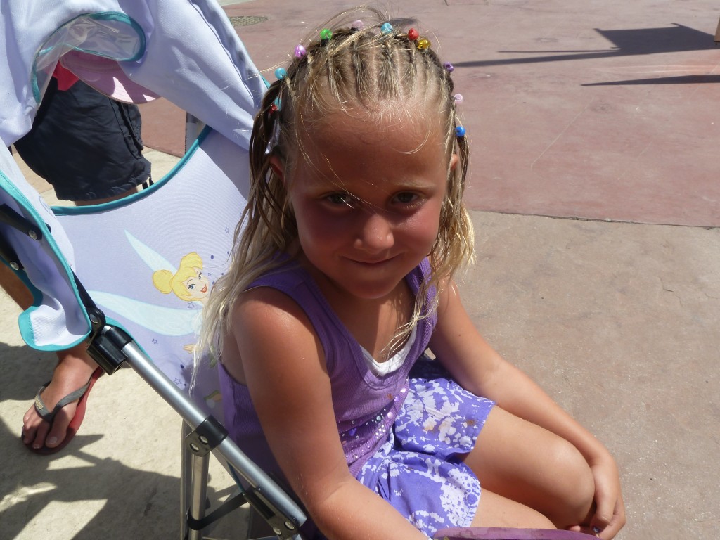 Nere på stan så åt vi supergod pizza och Abigail ville få håret flätat, så det fick