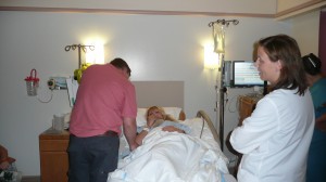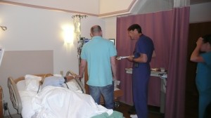 När vi kom till sjukhuset så fick vi först stå och vänta ett tag vid receptionen