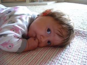 så spyr hon. Vår stackars lilla älskling. Hon har ingen feber längre