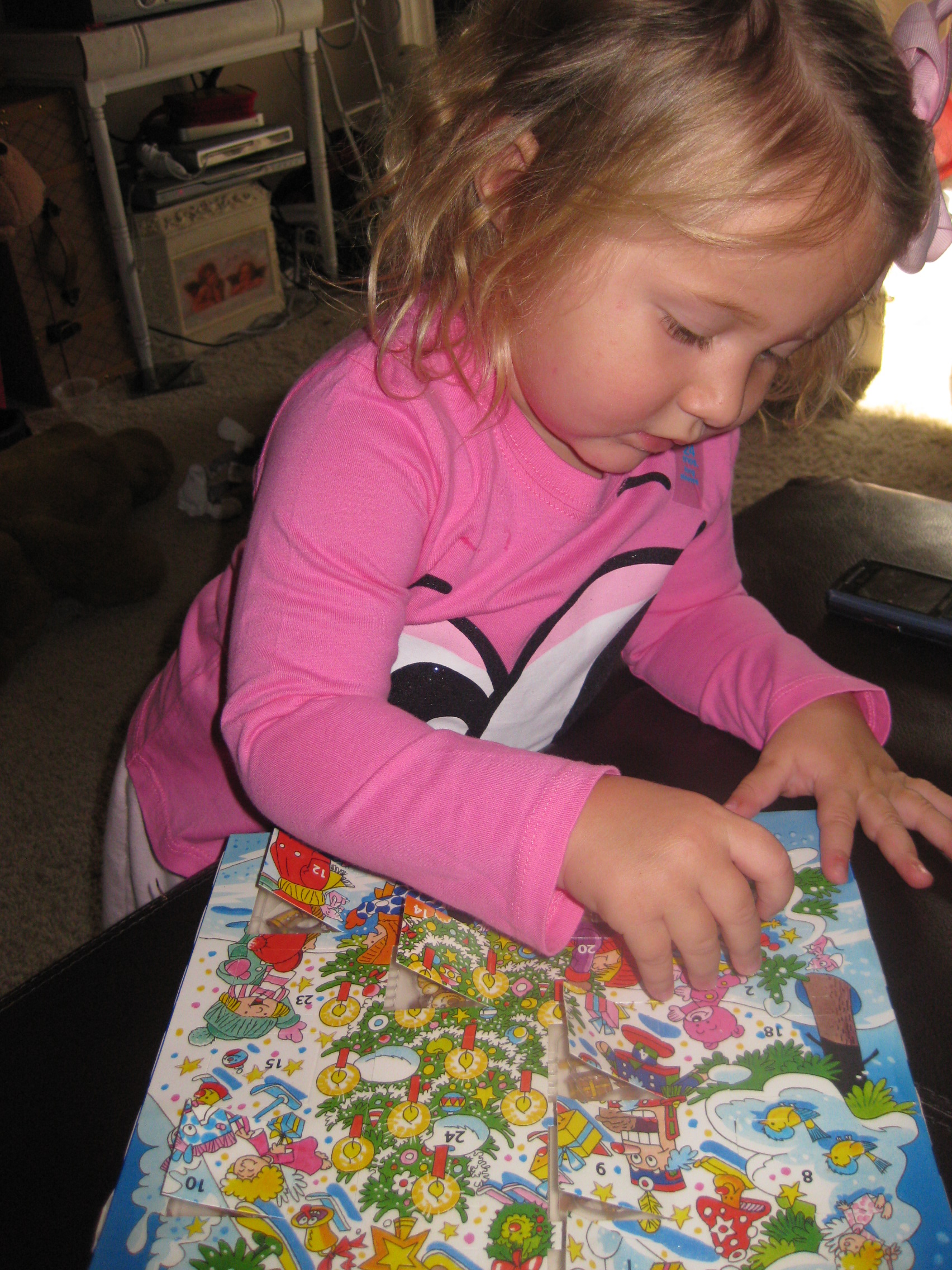 Abbie älskar sin kalender.. Hon har chokladen i munnen