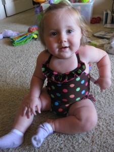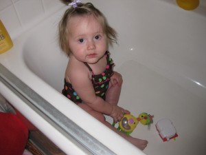 Sanna - Jättefin baddräkt till Abbie och söta bilder på henne! Klart man ska i badkaret med baddräkten…haha…=)