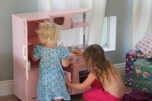 Lek köket och 3 blondiner framför TVn, kollar på Kalle 🙂