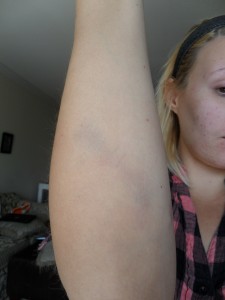 ja såg att den va helt blå. Så.. Ouchie arm också 🙁