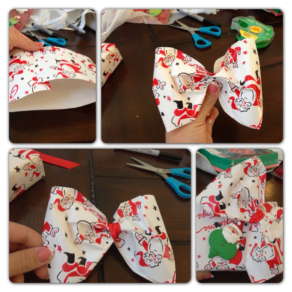 Ta en remsa papper (av samma som paketet eller enfärgat), vik remsan dubbel. Tejpa ihop ändarna.