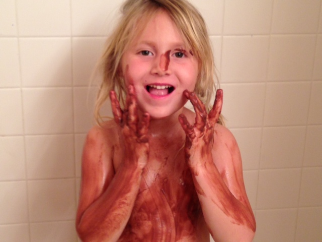 jag ett tips om att låta barnen leka med chokladpudding i badkaret. A S G. Så ja, det fick tjejerna göra