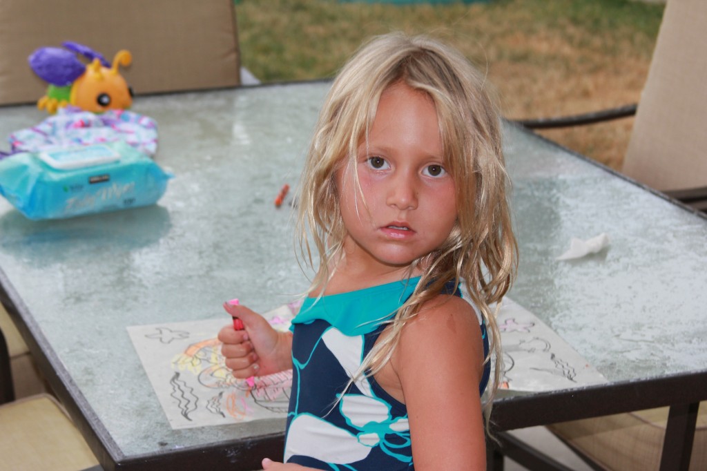 När vi kom hem så började det duggregna. Första regnet sen i April. Abbie ville leka ute