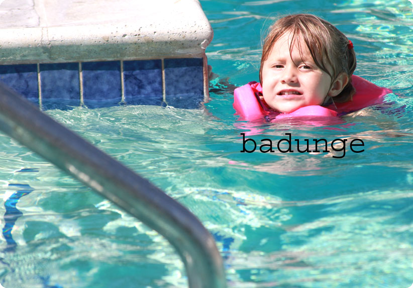 Så härligt! Vi har varit till poolen och Abbie trivs som fisken