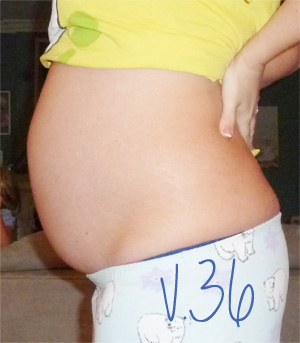 Om du väntar ditt första barn ligger det troligtvis i rätt position nu, uppochned. Tycker du att bebisen rör sig något annorlunda jämfört med tidigare? Det kan bero på att det är trångt därinne, men är du minsta orolig prata med din barnmorska. Nu ökar fostervattnets mängd inte mer utan det minskar snarare eftersom din kropp absorberar en del av det. Hjärnan är färdigväxt. En del psykologer säger att barnet redan nu är medveten om sitt “jag” eftersom det kan svara på saker med till exempel sparkar.