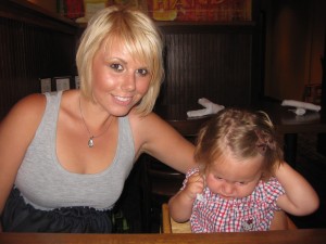 Abbie va lite cranky när vi va ute och åt (på Rock Bottom).