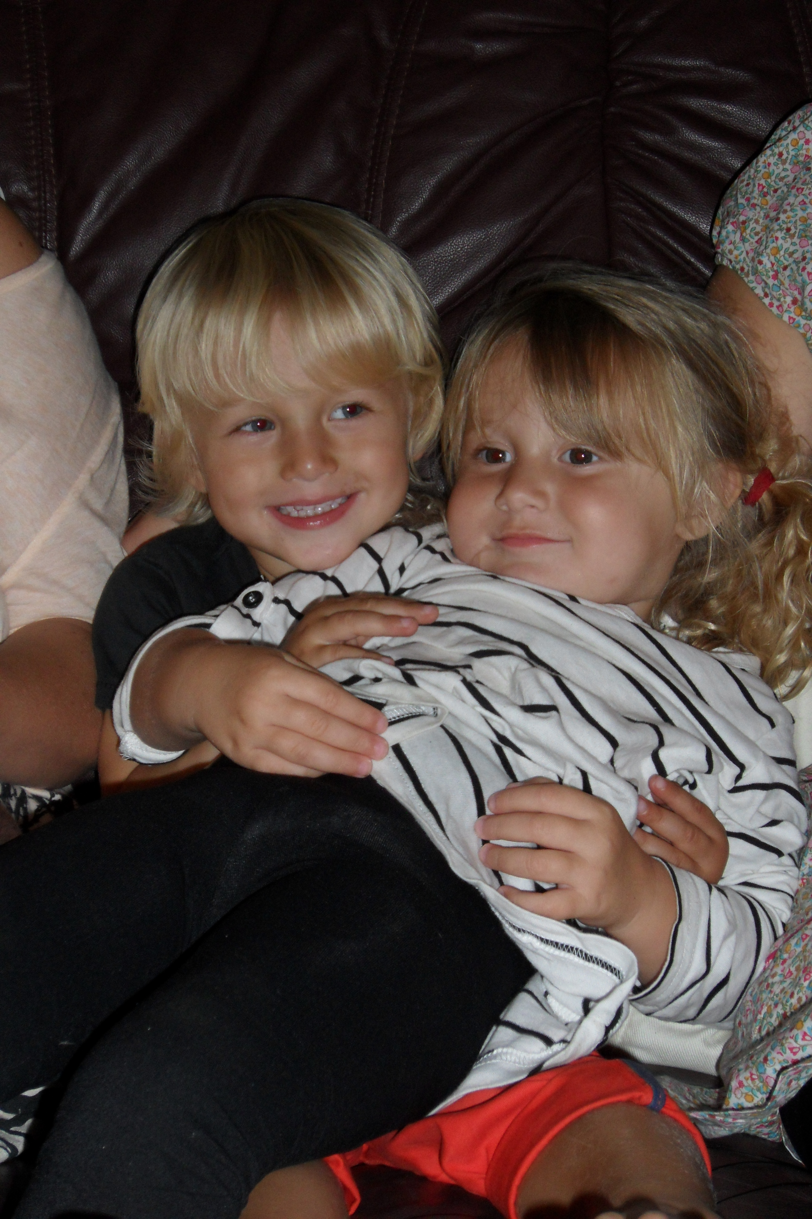 Dom satt och pussades i soffan mellan oss, sötingar.